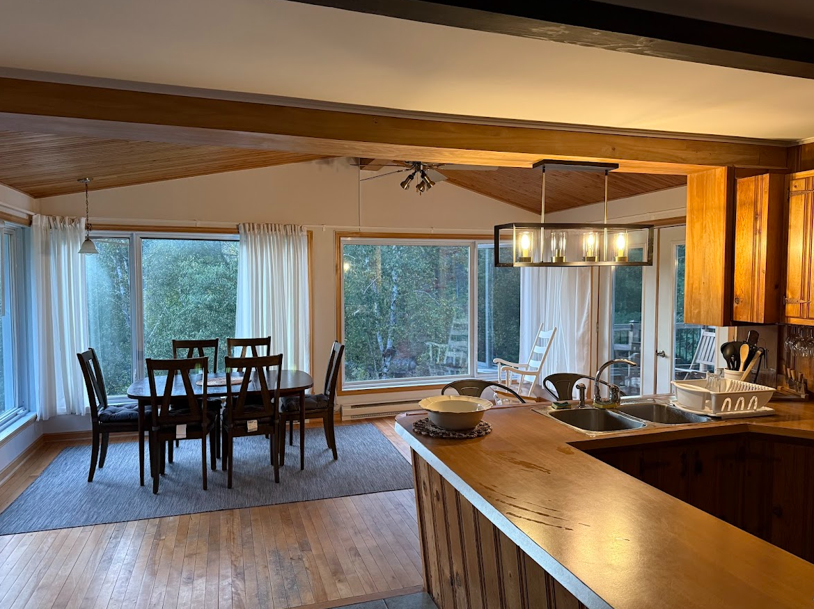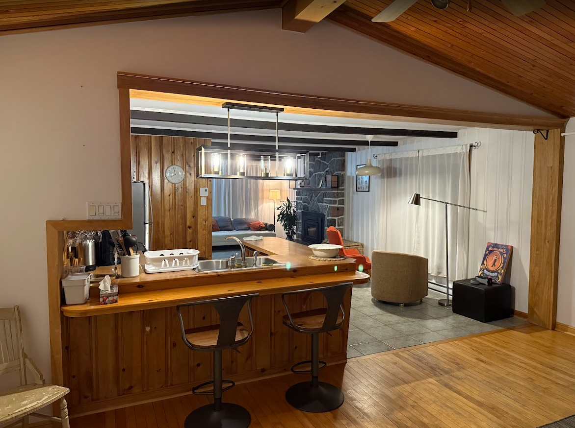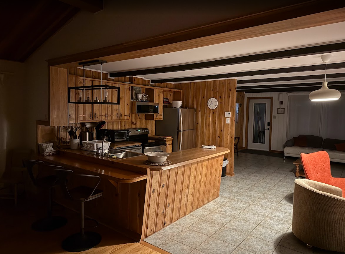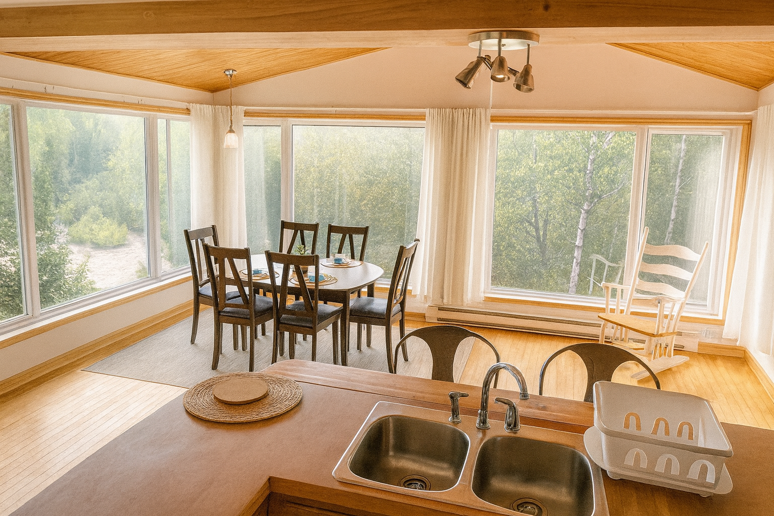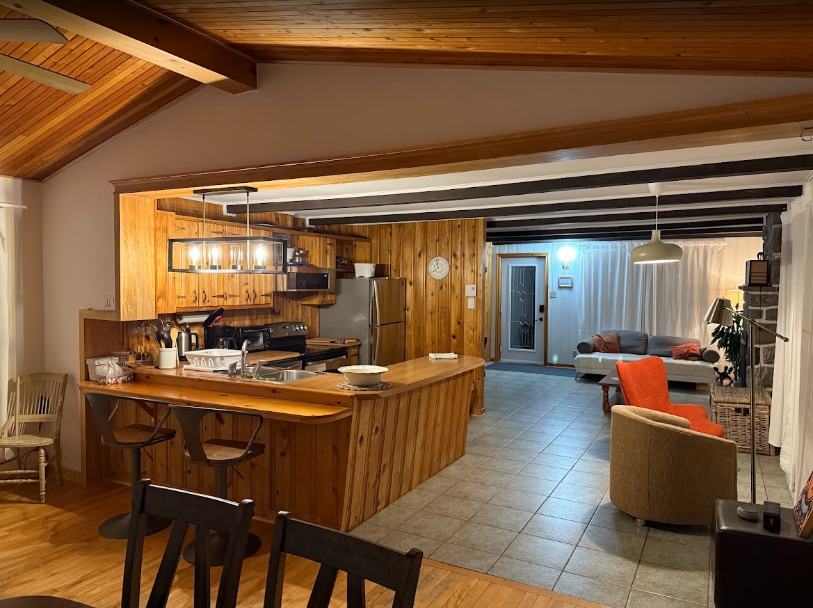 - Chalet — cœur du site : salon chaleureux avec foyer, cuisine équipée, terrasse avec vue imprenable. Wi-Fi aussi dehors près du chalet.